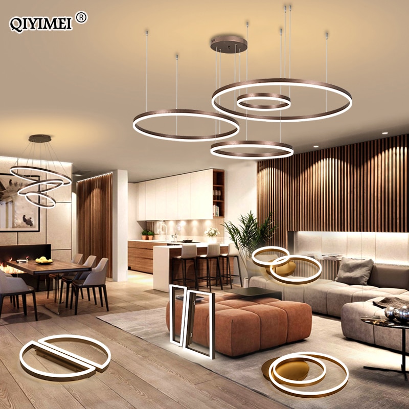 QIYIMEI Modern LED Pendant Lights Gold Black Coffee Lights for Bedroom Dining Living Room Bar Hanglamp Indoor Luxury Lighting